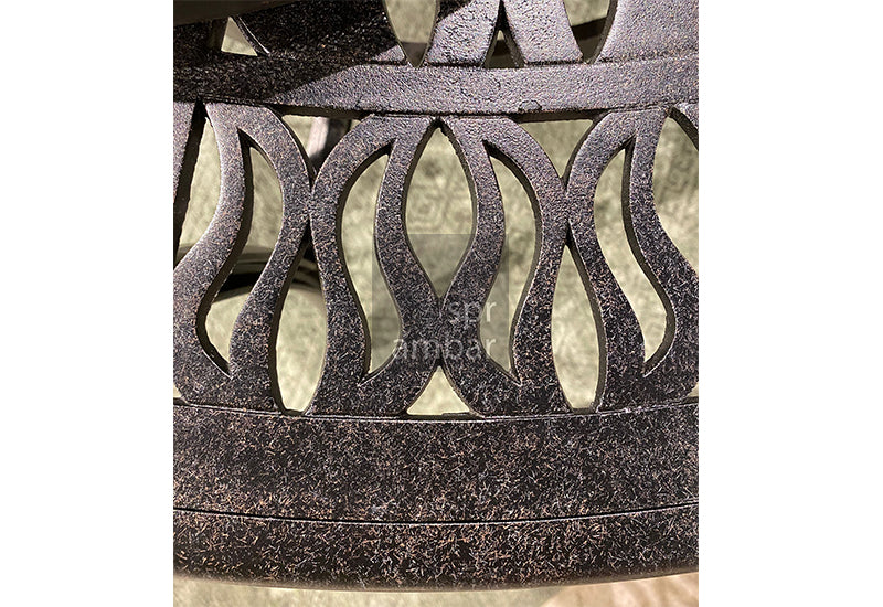 Cast aluminum frame, dayanıklılığı ve zarif oranlarıyla dikkat çeker. Powder-coated Deluxe Bronze yüzey, UV ışınları, nem ve tuzlu hava koşullarına karşı koruma sağlar.