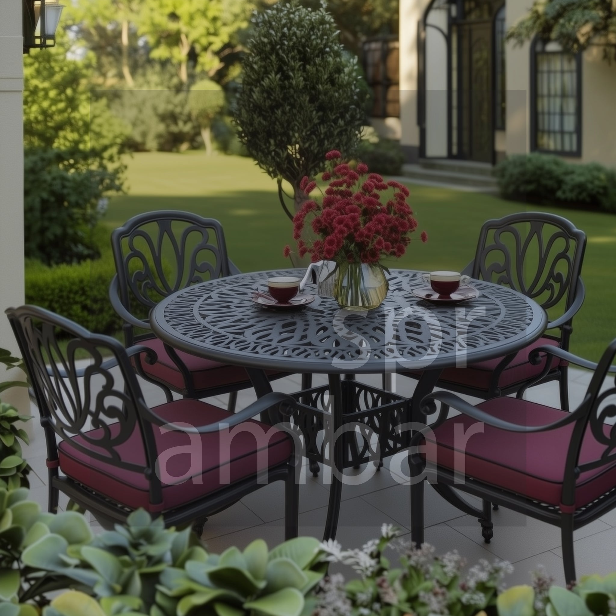 Takımın masa ve sandalyeleri cast alüminyumdan üretilmiştir. Bu malzeme, dış mekân mobilyaları için ideal bir denge sunar: hafiftir, taşınması kolaydır; fakat aynı zamanda rüzgâr, nem ve sıcaklık değişimlerine karşı dayanıklıdır. Paslanma yapmaz, bakım gerektirmez ve yıllar boyunca formunu korur. Bu dayanıklılık, dış mekânda yıl boyu kullanılan bir masa takımında aranan en büyük konforlardan biridir.